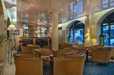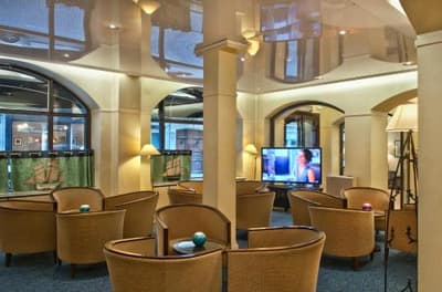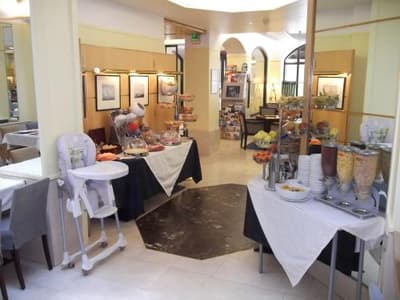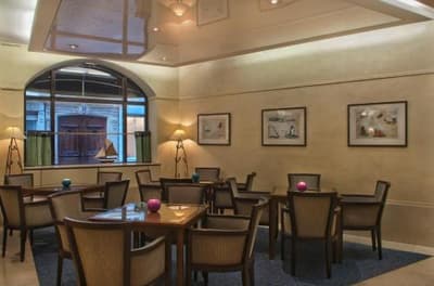 On aime prendre le petit déjeuner dans le lobby raffiné.