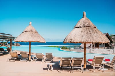 Dominée de blanc, elle est résolument design. Elle trouve la parfaite harmonie entre l’intérieur et l’extérieur avec sa structure ouverte. Le mélange de bois, de verre et de rotin rend l’ensemble harmonieux. Parfait équilibre entre élégance et exotisme.