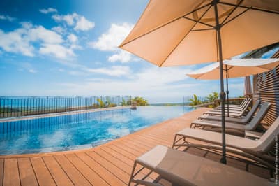 Le top ! Idéale pour un séjour en amoureux, le cadre est serein et reposant. Installée en rez-de-jardin, la terrasse est meublé de transats et de fauteuils pour apprécier la vue incroyable sur la mer. Elle accommode un grand lit. Salle de bain avec baignoire design et douche italienne.