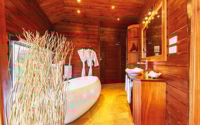 Un Lodge niché dans un spectaculaire endroit, en pleine forêt où vivent des hardes de biches et de cerfs. Loin des plages, la découverte surprenante de la moyenne montagne.