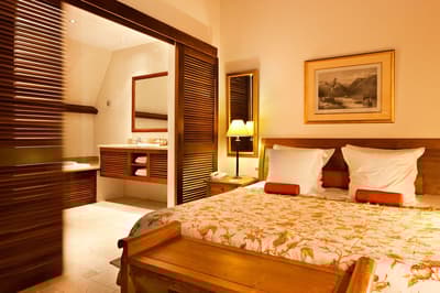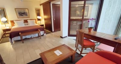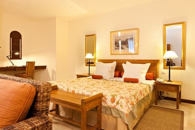 Saint Alexis fait référence au premier navire français ayant accosté sur l’île de la Réunion. Alors forcément, l'architecture marine de cet hôtel évoque une coque de bateau. Construit en 1996, c’est le plus ancien 4-étoiles de l’île intense ! On y retrouve de nombreuses évocations du style réunionnais traditionnel et colonial : les terrasses en bois, les colonnades, les coursives. Tourné vers la mer, cet hôtel de luxe baigne en plus dans la lumière, au cœur d’un splendide jardin tropical, où vous pourrez chiller tranquillement tout en dégustant une délicieuse noix de coco fraîche en mode posé. Depuis la passerelle du second étage, on a une vue de ouf sur la piscine principale. Car oui, il y a plusieurs bassins, dont un qui donne directement vers la mer. Dingue ! Allez, il est temps de profiter de la vie, tranquillement étalé sur une chaise longue... En soirée, ne manquez pas les concerts de jazz ou les fiestas latina. Enfin au bar, savourez un bon whisky hors d’âge ou un cocktail signature avant de regagner votre chambre (peut-être un poil trop old school...) pour la nuit. Good night !
