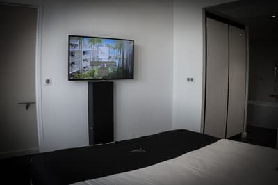 L’ensemble est dans un style contemporain avec un beau carrelage, un mobilier tendance et se complète dans des tons neutres. La chambre est dotée d’un lit douillet et la salle de bains est équipée d’une douche et wc séparés. Le tout dans une ambiance zen !