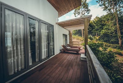 C’est un vrai havre de paix dans les montagnes de l’ouest. Sa terrasse aménagée avec un beau fauteuil oscillant en rotin profite de magnifiques levers et couchers de soleil. Elle est très spacieuse et dispose d’un salon avec une belle table basse en tronc d’arbre. Ce chalet individuel, procure intimité et confort dans un cadre idyllique. Salle de bain ouverte sur l’extérieur.
