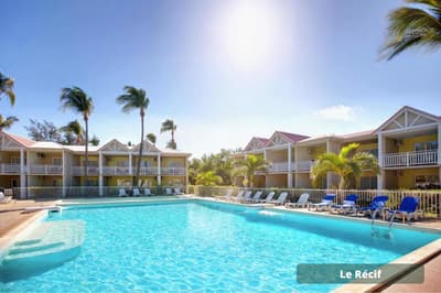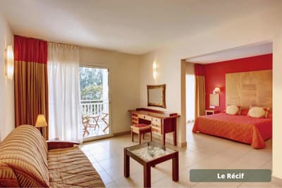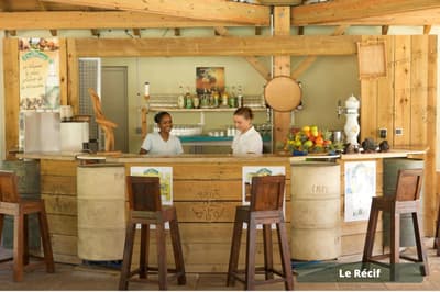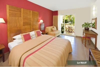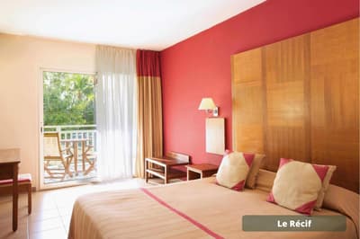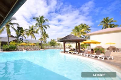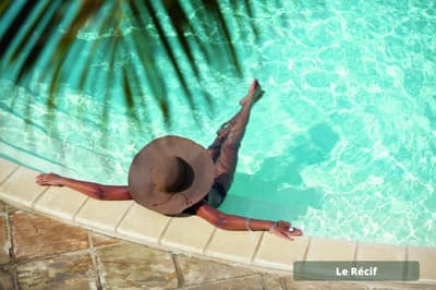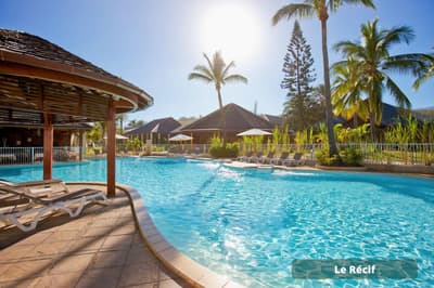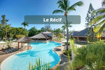 Vous voulez passer des vacances avec les copains/copines sans avoir à vous soucier d’occuper les enfants H24 ? Vous avez frappé à la bonne porte ! A vous les parties de tennis et de volley-ball, les soins esthétiques entre copines au spa, la découverte de la méditation sur du paddle yoga, tandis que les enfants s’activent — et se fatiguent ! — au Club Enfants. Le repos total avec une prise en charge qui permet une vraie décompression relaxante... Et sinon, l’hôtel Le Récif doit son nom au récif corallien qui lui fait face. Si vous aviez envie de tutoyer des poissons-perroquets arc-en-ciel et des balistes Picasso aux livrées chamarrées, c’est le moment de chausser un kit PMT (palmes maque tuba) gracieusement prêté ! Un conseil : palmez en grenouille (genoux pliés) et non pas en ciseau en battant des palmes sur l’eau — vous serez plus discret et vous approcherez plus facilement les poissons ou les tortues. Ici, la panoplie complète de la carte postale tropicale vous sert d’écrin. Un jardin tropical de trois hectares rassemble des fleurs exotiques, entre roses de porcelaine, hibiscus et frangipaniers odorants et des arbres à la végétation généreuse, comme l’arbre à pain ou le manguier. Les bungalows colorés sont disséminés dans ce vaste jardin. Le point central de l’hôtel est évidemment composé des deux piscines !