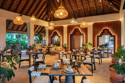 Les chambres arborent une décoration chic avec un beau carrelage, un mobilier en bois clair, des tableaux à motif exotique ornant le mur, un fauteuil confortable avec pouf pour se relaxer, d’un lit à baldaquin et de lits jumeaux. Le coin salon et salle à manger est confortablement aménagé avec des fauteuils à motif fleuri, le tout dans une dominance de blanc qui créent une atmosphère parfaite pour des moments de détente et de sérénité!