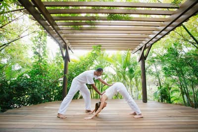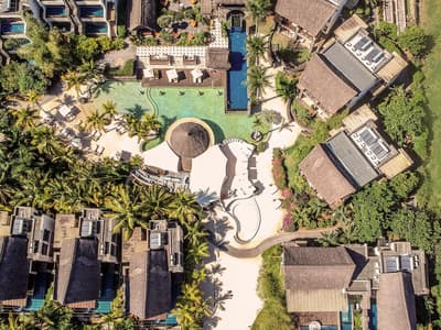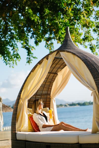 Ce spot éco-friendly a un goût de paradis ! Avec le doux parfum des frangipaniers et autres bougainvilliers dans les jardins, et l’eau turquoise et le sable doré en guise de point de vue... Côté déco, c’est d’inspiration coloniale, avec du bois foncé, des ventilos au plafond, des salons ouverts sur l’extérieur. L’hôtel, niché dans une crique isolée, abrite de petites bâtisses de trois niveaux aux toits de chaume, qui bordent une piscine tout en courbes. Vous déjeunez sur une table dressée les pieds dans l’eau, car installée dans une partie très peu profonde du bassin aux airs de lagon : les kids adorent ! Et le soir, c’est table pour deux, en amoureux, sur la plage. Même sensation d’évasion dans une baignoire XXL en extérieur, face à la mer, ou sur la terrasse d'une suite qui se prolonge d’une piscine à débordement. Qu'on vienne ici en duo ou en tribu, tout est pensé pour décompresser. A commencer par le fait de profiter d’un massage ayurvédique ou d’une séance de watsu au spa ! Sans oublier la séance de yoga sur la plage, en petit comité, à l’heure où le soleil se couche...