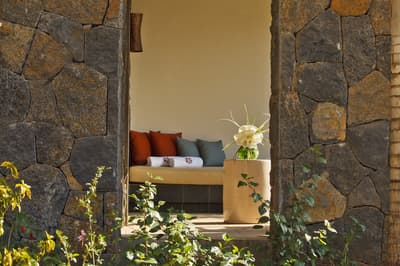 Entre extérieur et intérieur, la suite est à un juste milieu dans un aménagement ouvert et spacieux. Située en bord de mer, sa piscine et son jacuzzi offrent une vue panoramique sur l’océan. C’est le grand confort avec sa douche à vapeur et sa baignoire en pierre. Sa chambre s’ouvre sur la terrasse, procurant un espace ouvert parfaitement meublé pour des bons dîners aux chandelles.