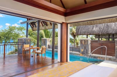 Située à l’étage, la suite possède une vue magnifique des jardins luxuriants et des piscines éclairées de l’hôtel. C’est le confort garanti dans cet espace ouvert et spacieux avec sa piscine à débordement privée. Son balcon dispose de longues chaises idéales pour se détendre et profiter du climat mauricien.