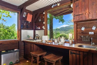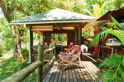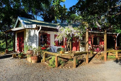 Elle se fond dans le paysage du petit village de Chamarel grâce à son allure. L’extérieur et l’intérieur sont d’un style mauricien. L’ensemble est dominé d’éléments en bois la rendant plus chic. Quelques pièces en rotin et en osier complètent la décoration. Des touches de couleurs ajoutent de la gaieté à la maisonnette.