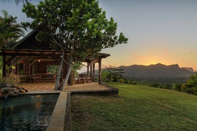 Las de la vie de Palace ? Découvrez l’île Maurice grandeur nature en séjournant à la Vieille Cheminée. Direction Chamarel, charmant village pittoresque du sud-ouest de l’île, souvent cité comme un des plus beaux villages mauriciens. Ici, Dame Nature règne en maitresse absolue. On y vient bien sûr pour sa terre aux sept couleurs, pour ses cascades impressionnantes, mais aussi pour cet art de vivre unique qui règne dans la belle campagne mauricienne. Alors que la route serpente entre champs de canne à sucre et plantations d’ananas et de palmiers, vous arrivez sur le domaine de la vieille cheminée. L’entrée est marquée par les vestiges de l’ancien moulin du village daté du 19eme siècle, quoi de plus authentique ? Vous l’avez compris,votre séjour ne ressemblera en rien à tout ce qu’on vous a raconté de l’Ile Maurice. Ici, pas de bling bling, pas de bar ou boite hyper tendance, mais une véritable immersion dans la vie locale, la vraie…. Il faut dire que la vieille cheminée est avant tout une ferme agricole qui ne produit que des fruits et légumes biologiques. Au fil des années 6 charmants lodges, délicieux bungalows typiquement créoles sont venus s’ajouter. Ajoutons à l’ensemble une petite écurie et vous avez la carte postale idéale de vos vacances à la ferme ! Votre petite maison dans la prairie du bout du monde où vous allez passer des vacances merveilleuses. Pas d’inquiétude, si vous veniez à être en manque de plage, de soleil ou de sable, l’océan est à moins de 15mn avec en prime une vue imprenable sur l’Icône de l’île, sa majesté le Morne Brabant… Alors ? On se laisse tenter par des vacances autrement ?