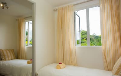 Orientée vers le sud-ouest de l’île, elle offre une vue imprenable des montagnes. Elle baigne dans une atmosphère paisible, idéale pour se couper du quotidien. C’est une expérience authentique dans un cadre unique. Ce petit nid douillet dispose d’un lit queen et d’un lit simple. Sa terrasse, similaire aux maisons mauriciennes offre confort et plusieurs espaces aménagées.