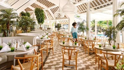 Que désirer de plus ? Cet incroyable complexe possède trois baies, une sauvage non baignable, une sauvage baignable, une en arc de cercle parfaite. Pour tous les goûts. De la piscine suspendue, à côté du Palm Court, le resto principal, on a vue sur les îles du Nord. Il existe une autre piscine, réservée aux adultes, bien planquée sur une petite péninsule avec de beaux arbres. La designer Kelly Hoppen a signé la déco retro-chic sous les toits de chaume. Mais ce qui hallucine, c'est le nombre d'idées et d'ambiances, le bar à rhums dans le banyan centenaire, le restaurant turc avançant sur l'eau, le restaurant péruvien, la roulotte proposant des glaces minute, le bar à cafés, le spa magnifique avec son bassin d’hydrothérapie, les courts de tennis, le practice. Parmi huit restaurants et quatre bars, le resort est très fier de sa table péruvienne et de ses propositions healthy. Cela devient le jeu des vacances : qu'est-ce qu'ils pourraient bien inventer qui manque ? Les paris sont ouverts.