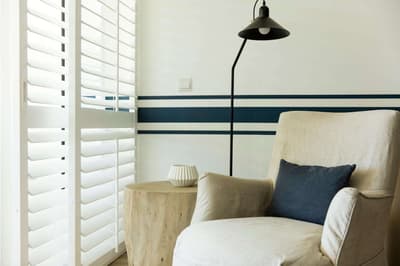 Située au rez-de-chaussée ou au 1er étage, elle dispose d’un balcon ou d’une terrasse aménagée avec une vue sur le lagon. Coin salon avec deux beaux fauteuils en lin confortables. Belle atmosphère de style maison de plage.