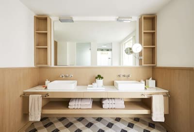 La suite familiale est intelligemment conçue pour accueillir toute la famille. Avec un lit King size, un grand canapé-lit et la possibilité d’y ajouter des lits d’appoint, elle est très fonctionnelle. Elle a une chambre et un vrai salon séparé ainsi que 2 salles de bain. Baignoire et douche, toilettes séparées.