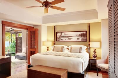 La suite est idéale pour les couples ou les voyageurs solo. Elle offre un balcon confortablement aménagé parfait pour profiter de la vue lagon et du coucher de soleil.