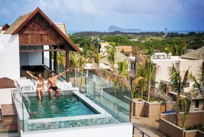 Vous cherchez de l’espace dans vos chambres et un hôtel intimiste immergé dans la végétation exotique mauricienne ? Vous trouverez votre bonheur au Mythic Suites & Villas, à un kilomètre de la plage de Grand Gaube. Enfilez vos tongs et ne les quittez plus ! A moins que vous préfériez marcher pieds nus dans votre immense suite de 149 m² minimum ! Si vous choisissez les Grand Luxury Suites, vous partagerez votre piscine, mais pour les autres catégories, vous aurez le luxe de profiter de votre PROPRE bassin ! Avec vue sur les îles environnantes pour les Penthouse et sous les palmiers pour les Elegance Pool Villas de plus de 400 m² ! Bref, vous l’aurez compris, ici tout a été réfléchi pour que vous vous sentiez chez vous à Maurice. Et ça continue au resto puisque vous y aurez l’agréable surprise de trouver une ambiance bistrot détendue, où on se régale autant des spécialités de l’île avec une influence indienne indéniable que des plats internationaux genre burgers, pizza ou pasta. Mais attention, tout est préparé avec des produits sélectionnés pour leur qualité et locaux au maximum ! Avant de passer à table, on vous conseille quand même de prendre le temps de sortir de votre piscine ou de votre villa pour participer à un cours de yoga ou de méditation… A moins que vous ne préfériez réserver un massage dans votre suite ? Tout est possible ! Une adresse à retenir aussi bien pour une lune de miel que pour un séjour en famille : l’hôtel est kids-friendly jusqu’au bout du menu au resto !