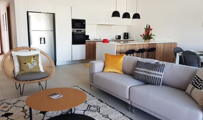 Cuisine équipée, services de conciergerie, wifi haut-débit illimité, smart TV écran plat, 3 chambres, 3 salles de bain, terrasse, jardin privé selon disponibilité, salon de jardin, piscine commune, parking en sous-sol