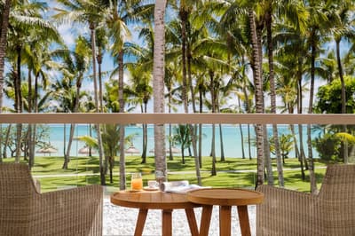 La chambre est décorée avec raffinement avec un beau parquet et un mobilier design. L’ensemble se complète par des teintes claires qui caractérisent le glamour mauricien. La salle de bain est tapissée de marbre frais avec une baignoire-douche en îlot et les larges fenêtres permettent d’admirer la vue apaisante du lagon de votre chambre; quel que soit l'endroit où vous choisissez de vous détendre. Le tout dans une atmosphère tropicale!