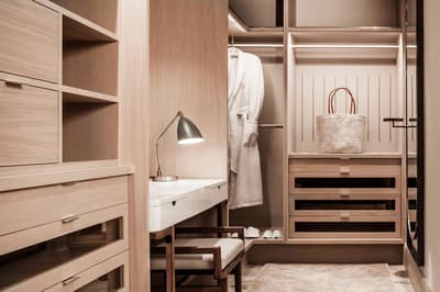 La chambre principale dispose de meubles aux tons pâles, d’un dressing avec miroirs, d'une salle de bain tapissée de marbre avec double vasque et bénéficie de lumière naturelle. Le tout dans une atmosphère de confort!