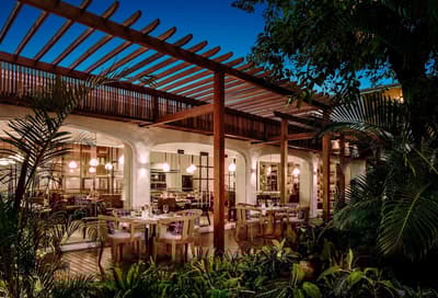 Au son du gong, la grande porte en bois sculpté s'ouvre, et vous voilà plongé dans un camaïeu de bleus. De l'autre côté du lagon, à l'extrémité de la pointe qui vous fait face , s'élève un temple indien qui semble minuscule, même si c'est un des plus sacrés de l'île. Occupant depuis plus de 45 ans le bout de la péninsule de Belle Mare sur la côte est, le One&Only Le Saint Géran, premier palace de l'île affiche un livre d'or digne des Oscars. Cet hôtel est tellement dingue que certains réservent la même chambre depuis 20 ans #addictif. Les bases sont là, un service aux petits oignons (1 employé pour deux clients) 20 hectares de jardins paradisiaques, quatre restaurants ultra stylés. Le steakhouse Prime, qui a son petit frère à Londres, affiche un décor de boucherie moderne...Mais les dalles du sol viennent d'une chapelle française du 17ès. "Le diable est dans les détails" disait Nietzche. Tapasake avance ses cloisons laquées, ses claustrats de bois sur un ponton au-dessus des vagues. Idéal pour un interlude romantique entrecoupé de tapas aux goûts étranges venus d'Asie. Loin des palaces convenus et ennuyeux, le One& Only se veut festif. Le décor de cuisine haut de gamme de la Terrasse se prête aux retrouvailles pour une batterie de casseroles. La Pointe accueille les familles autour d'une piscine entourée de cabanas et d'un restaurant pieds (presque) dans le sable. Au bord de la piscine principale réservée aux adultes, les dîneurs peuvent applaudir un show de sega tambour ou des concerts. Une bibliothèque survolant la houle des 4000 palmiers, un spa de 13 cabines, un club One rassemblant club de gym et le centre de sports nautiques et terrestres, complètent les prestations. Et n'ayez pas peur. Si le nom de Saint Géran évoque le naufrage du bateau du même nom, drame relaté par Bernardin de Saint Pierre dans son célèbre roman Paul et Virginie, le lagon bordant l'hôtel s'avère des plus paisibles.