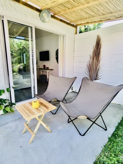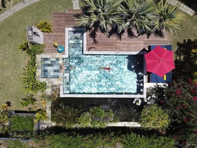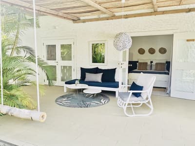Plus spacieuse, elle offre confort et calme. Elle dispose d’une terrasse et d’un accès direct à la piscine et à un jardin privatif. Une petite balançoire en bambou sur la terrasse ajoute à son exotisme. Un espace harmonieux offrant un retrait du quotidien dans son environnement paisible et relaxant.