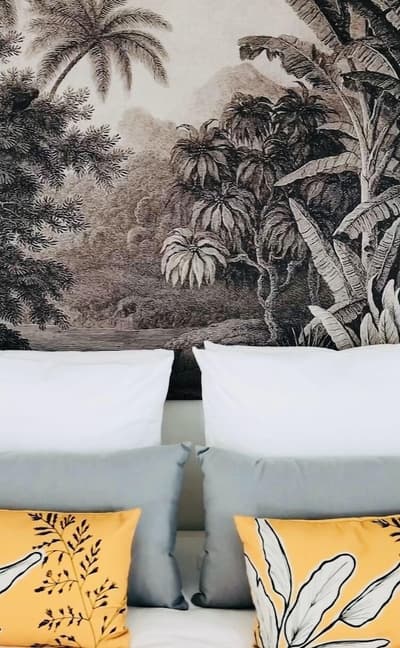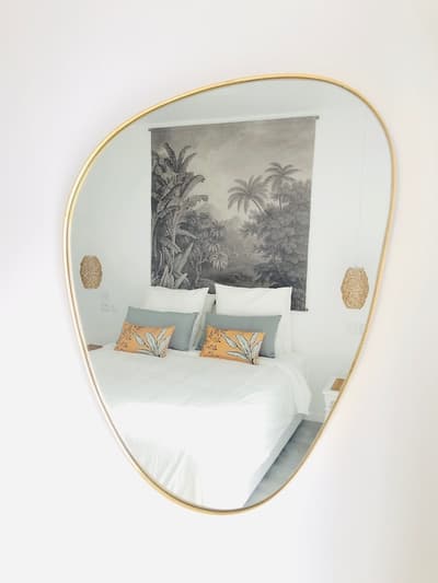 Simple et à la fois chic et minimaliste. Des meubles en bois et les tapis tissés donnent un style mauricien à l’ensemble. Le blanc domine la chambre et rend l’espace lumineux et paisible. Le tableau au mur met en avant le paysage exotique et tropical de l’île.
