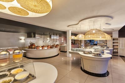 Domicilié "Baie des Tortues"... Ca fait envie, non ? Le site dessine une très jolie pointe où se rejoignent les eaux du lagon et de la rivière Citron. Inattendue, cette dernière apporte la touche de magie dont profite le ponton de restaurant Riviera. La densité de la végétation qui la borde, évoque davantage un paysage d'Asie ou d'Amazonie. Les trois piscines design qui cernent la structure centrale, coiffée d'une charpente traditionnelle, créent une délicieuse oasis au milieu d'un jardin de palmiers, ravenalas et d'arbres du voyageur. La tradition est particulièrement chère aux hôtels Attitude, d'où cet héritage colonial qui imprègne certains espaces, ces multiples salons extérieurs qui invitent à la convivialité et ces Taba-J qui campent sur le sable pour partager avec vous le meilleur des saveurs de Maurice. Rien ne vous empêchera toutefois de partir en Italie en vous asseyant à l'A Tavola ou encore au Japon en vous attablant au Lime. A l'image de cette île mosaïque, la diversité est enfin ici le maître-mot : expériences et activités se mangent sans faim et sans fin !