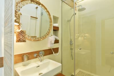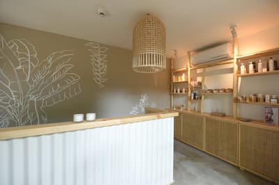 Elle donne une sensation d’espace et d’ouverture. La chambre privilège est orientée vers la piscine et est ouverte sur le jardin tropical pour celles installer au rez-de-chaussée. Son extérieur est simple et rustique. C’est un cadre idéal pour se ressourcer et pour profiter du calme.