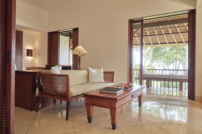 Cette luxueuse chambre profite d’un balcon privé avec un lit de repos d’où vous pourrez vous détendre confortablement en savourant votre café devant la magnifique vue sur l’océan.