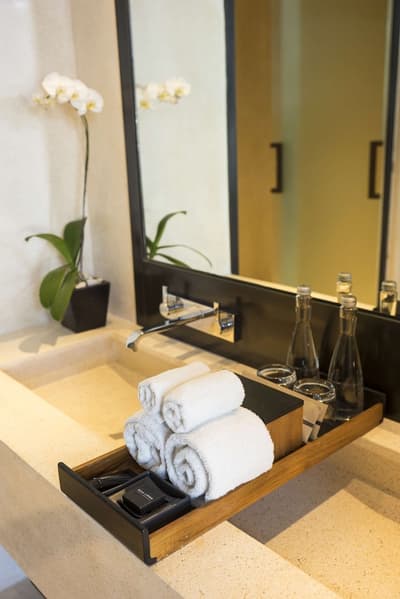 Plus spacieuse, elle est confortable et très agréable. Sa terrasse est aménagée de longues chaises et d’une petite table pour apprécier le cadre reposant. Elle offre un accès privilégié à la piscine réservée aux adultes. Très spacieux, le salon dispose de canapés-lits et de fauteuils confortables. Salle de bain chic avec une baignoire et une douche à effet de pluie.