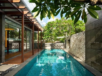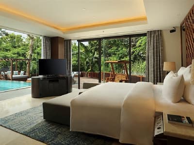 Sur la pointe sud-ouest de Bali, face à l’Océan et à l’endroit idéal pour les couchers de soleil, ce complexe touristique propose d’immenses villas.
