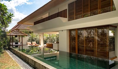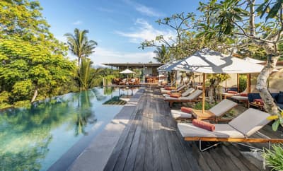 Aux portes de la jungle, ce boutique-hôtel a brillamment réussi la symbiose du moderne avec tout ce qui fait la richesse et la singularité du patrimoine local. Si la majorité de la structure est un mix savant de béton brut, d'acier et de verre, elle tisse pourtant des liens formidables avec son environnement, grâce notamment à une combinaison de feuilles, de plantes grimpantes et d'herbes sauvages, plus l'utilisation de matériaux locaux, comme le noyer, le bambou et cette brique orange typiquement balinaise. Ici, le design sert la cause tropicale. Quant aux suites et villas, comment choisir ? Les premières vous immergent d'emblée dans la jungle et sa magie. Les parfums de frangipanier et d'encens sont une belle entrée en matière à ce décor de tek, de pièces artisanales, d'un mobilier traditionnel et contemporain campé sur des tapis de jute tressés. Les secondes, organisées autour d'un jardin privé, déroulent un espace de vie extraordinaire dans une blancheur enveloppante, agrémenté d'un superbe couloir de nage. Cornélien, non ? La piscine qui semble planer au dessus de la canopée est une merveille et les cabanas, des nids irrésistibles ! On adore cette impression de forêt ondulante depuis le toit du Copper, aussi époustouflant à midi que sous une couverture d'étoiles. Sans oublier que dans l'assiette, c'est bio et c'est excellent...