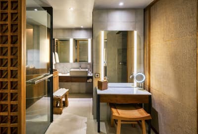 Installée parmi la végétation luxuriante, cette belle suite profite d'un cadre superbe. Elle bénéficie d’un petit coin complètement aménagé ouvert sur l’extérieur. Elle accommode un lit king et dispose d’un salon meublé d’un canapé et de beaux fauteuils. Salle de bain avec baignoire japonaise et douche.
