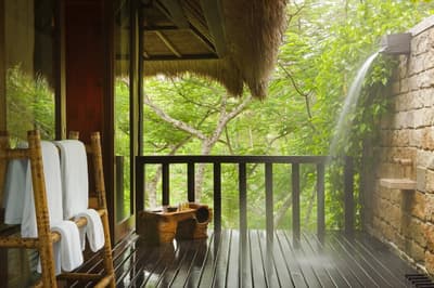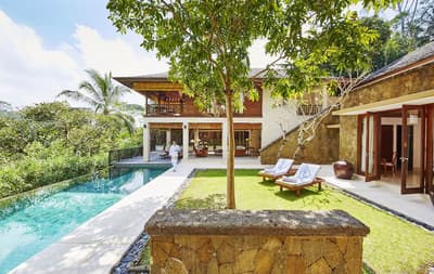 La jungle par-ci, la jungle par-là, la jungle, la jungle, la jungle… Vous allez décidément la voir sous toutes ses formes. Jusqu'à vous croire dans Le Livre de la jungle ! Partout, à tout moment. C’est comme si les hébergements et la jungle avaient fusionné pour ne former plus qu’un : cet hôtel hors du commun. Vous vous y sentirez terriblement bien, on peut vous l’assurer… Pourquoi ? Tout d’abord, grâce à ses piscines de partout. Il y a carrément des piscines naturelles en bas près de la rivière. Sans compter sur le spa et ses traitements variés et absolument divins. Un endroit de calme et de bien-être assuré. Ça, c’est pour toutes les parties communes, mais si vous le souhaitez, vous pouvez louer une villa. Et là, et là… votre séjour va tout simplement passer au niveau supérieur ! On se demande même si vous voudrez en sortir. Piscines privées à débordement, jacuzzi, jardin et vue privilégiée sur la jungle. On ne vous refusera absolument rien. Vous vous imaginez vous réveiller tous les matins en peignoir blanc dans cet environnement ? Ça en jette, hein ? Alors faites vite, Mowgli et Baloo vous attendent. Comme diraient les autres, « il en faut peu pour être heureux » paraît-il. Il suffit peut-être juste de séjourner au COMO Shambhala Estate…