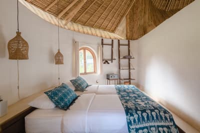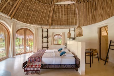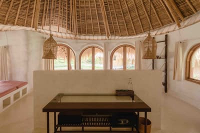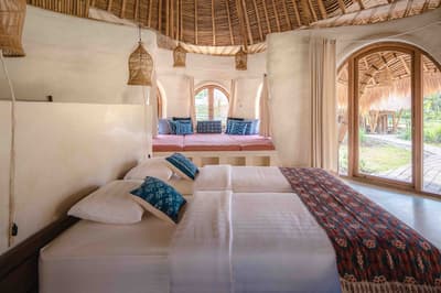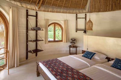 Un village de cases éco-conçu où le bien-vivre est de mise ! C'est l'occasion de faire une expérience rare : celle d’une vie à faible impact écologique, le temps de quelques jours. Ici, on se rend très vite compte qu’on peut se sentir bien avec peu de choses. La nourriture probiotique est un régal gourmand, les cases de terre sont particulièrement confortables et l’usage de matériaux d’origine naturelle n’interdit pas le luxe… Encore plus likeable : le Mana Earthly Paradise est géré par une entreprise sociale. Les bénéfices de votre séjour servent à financer les actions qu’elle mène en Asie du Sud-Est. De quoi donner du sens à vos vacances ! Sinon, avec ses cases construites à l’aide de sacs de terre, réunies autour d’un bâtiment central et reliées entre elles par un sentier qui fait des boucles artistiques autour des bâtiments, le Mana Earthly Paradise évoque irrésistiblement le village de brousse africain. Mais les rizières alentour détrompent rapidement : retour en Indonésie. Ici, c’est Bali ! À quelques kilomètres du centre-ville très animé d’Ubud, l’endroit est idéal pour se reposer et se connecter avec la nature environnante. Pas de piscine : l’eau est un bien trop précieux. On préfère récupérer les eaux usées pour irriguer le potager, tandis que l'eau venue du ciel, filtrée, alimente le réseau intérieur. Ouf, il en reste assez pour le thé glacé que vous pourrez siroter à votre réveil, face au soleil levant, si vous avez pensé à réserver une chambre orientée à l’est !