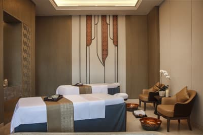 Elle comprend un style de décoration moderne et balinais avec un mobilier design et se complète dans des tons chaleureux. La chambre comporte des lits jumeaux confortables et la salle de bains est entièrement équipée avec une baignoire et douche à effet pluie. Le tout dans une ambiance sereine et chaleureuse !