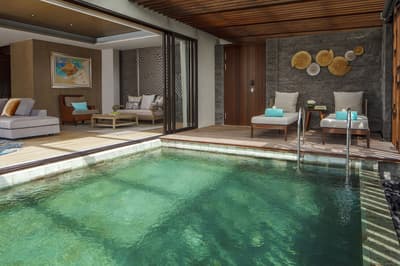 Elle bénéficie d’un style de décoration moderne et balinais avec un mobilier design et se complète dans des tons chaleureux. La chambre dispose d’un lit King size ou de lits jumeaux et la salle de bain est entièrement équipée avec une baignoire et douche à effet pluie. Le tout dans une ambiance sereine et chaleureuse !