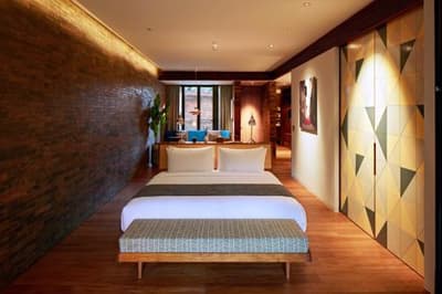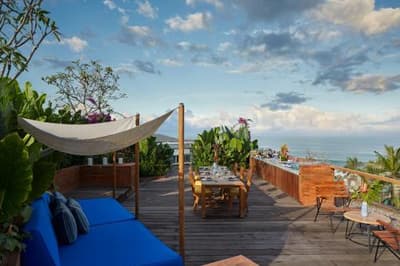 Le Potato Head Beach Club est l’un des meilleurs beach clubs de Bali, si ce n’est le meilleur. Vous le connaissez, n’est-ce pas ? Vous comptez même y venir ? Compréhensible, c’est THE spot pour faire la fête. Tous les plus grands DJs internationaux, de Peggy Gou à Richie Hawtin en passant par KiNK, y jouent. Et si on vous disait que vous pouvez y dormir ? Sans surprise, les Potato Head Suites sont liées au Potato Head Beach Club. Ce qui fait que vous pourrez y passer toutes vos journées et soirées sans frais supplémentaires, en ayant la priorité à l’entrée et les meilleurs transats. La classe ultime, right ? Et surtout super pratique pour rentrer dormir. En fait, vous ne quitterez jamais la fête. Côté hébergements, pas de chambres, que des suites ! Certaines ont même leur propre rooftop, leur propre piscine privée, voire carrément un jacuzzi face à l’océan Indien… Sérieux, comment y résister ? En plus, vu que tout le monde va à la piscine du beach club, celle de l’hôtel est super calme. L’endroit parfait pour les lendemains de soirées trop arrosées. Enfin, parce que c’est bien trop important pour ne pas en parler : l’hôtel a un impact carbone neutre ! Même sur ce point, il est parfait !