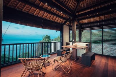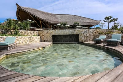 « Bali sustainable boutique resort » : rien que ces quatre mots, avec lesquels l’hôtel se décrit simplement, devraient vous donner envie. C’est comme si on avait pris les trois meilleures possibilités d’hébergement à Bali et qu’on les avait combinées ! Un resort à la fois intimiste et éco-responsable, vous vous rendez compte ? C’est absolument là qu’il faut aller… Il a été construit en bois récupéré de Bornéo, bambou et teck donc tout est très ouvert (attention pour les arachnophobes !) et respectueux de son environnement. Et puis, c’est pas comme si le spot n’avait pas déjà mille atouts pour vous séduire ! Grâce à sa position perchée en haut d’une falaise, la piscine à débordement avec vue sur l’océan est l’endroit parfait pour se relaxer. De jour comme de nuit, puisque vous pouvez vous y baigner 24h/24 ! Les lumières sous l’eau font que c’est tout aussi beau une fois le soleil couché. Mais vous le voyez venir, n’est-ce pas ? Le meilleur moment pour en profiter, c’est pendant le coucher de soleil évidemment. Appréciez le vent sur votre visage, sentez l’odeur de l’océan, écoutez les vagues, admirez les surfeurs, touchez ce bois. Au Suarga Padang Padang, les cinq sens sont gâtés !