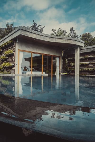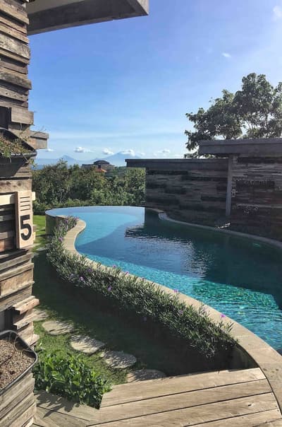 Un petit village lifestyle organisé autour d’un superbe bassin aux lignes arrondies, des chambres d’une grande beauté aménagées avec des matériaux naturels et durables. #SoLucky