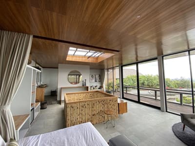 Elle marie une décoration moderne et élégante et la chambre climatisée bénéficie de la lumière naturelle grâce à des fenêtres du sol au plafond. Elle comprend un grand lit King Size et un coin salon pour les moments de relaxation. La salle de bains est dotée d’articles de toilette gratuits et d’une douche. Le tout dans une ambiance tropicale et chaleureuse !
