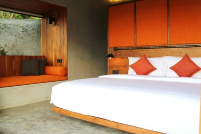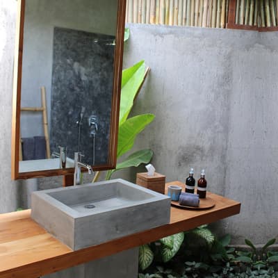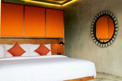 Un hôtel de charme, industriel chic et éco-friendly, à deux pas des plages ! Les beaux établissements sont nombreux à Bali, mais celui-ci a réussi un pari difficile : faire beau, simple et écolo dans un cadre splendide où le confort ne fait l’objet d’aucune concession ! L’Elementum, c’est une sorte de petit village lifestyle qui encadre un bassin aux formes féminines : les aménagements font la part belle aux matériaux bruts et nature, inspirés des quatre éléments. Le design est chaleureux, les couleurs flashy évoquent les années 70, le béton ciré s’associe avec bonheur au bois précieux… Rien d’inutile, pas d’étagères surchargées, de décors ajoutés : il se dégage une grande paix de ces habitations. Et la green attitude, ici, c'est pas juste un mot : exit les emballages individuels, les produits chimiques et le plastique ! Tout est pensé pour que rien ne vous sépare de la végétation alentour, même pas les salles de bains, en partie à ciel ouvert… Dans les habitations qui vous attendent, aux decks de plain-pied sur la piscine, les grandes baies vitrées sont autant de grands écrans qui laissent entrer la nature : des tableaux vivants que vous ne vous lasserez pas d’admirer. Simplicité et harmonie : what else ? Il suffit de se poser dans un coin pour ne plus avoir envie de repartir… Mais outre le cadre remarquable de ce spot, c’est la qualité de l’accueil qui finit de séduire : la gentillesse et l’attention sont tels que les hôtes rêvent tous de revenir ! Un 3 étoiles qui vaut sans doute bien mieux que ça…