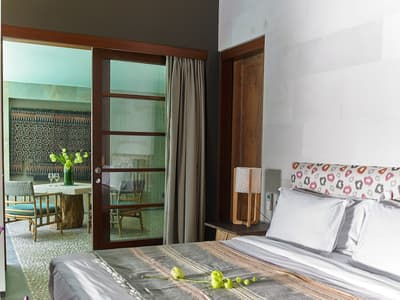 C’est une oasis calme et sereine. La terrasse aménagée de belles chaises et d’une petite table est idéale pour apprécier le cadre reposant. Idéale pour les couples, elle profite d’intimité et baigne dans une atmosphère romantique. Située autour d’une belle piscine, elle y offre un accès direct et privilégié. Petit salon avec de beaux fauteuils. Salle de bain avec baignoire en pierre.