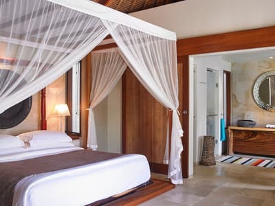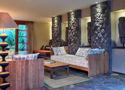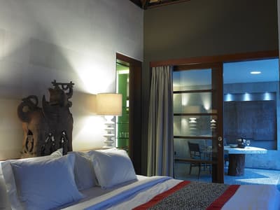 Tendez l’oreille, vous l’entendez ? Mais si, soyez attentifs… Vous entendez ce cours d'eau ? Voilà. C’est apaisant, c’est reposant, c’est la rivière qui coule tout en bas du resort ! Si vous le souhaitez, vous pouvez même prendre l’une des River Villas pour profiter de ce doux son pendant la totalité de votre séjour. A voir si la nuit, ça ne vous donnera pas envie d’aller au petit coin un peu trop souvent. Pratique, ces villas sont aussi situées à proximité des deux piscines qui sont, elles, à débordement sur la jungle. Vue épatante garantie ! Parce que oui, en plus de la rivière qui coule à flot, vous allez être au beau milieu de la jungle d’Ubud. C’est un peu excentré de la ville (deux kilomètres à peine !) mais au moins, ça permet du calme impossible à atteindre avec la frénésie urbaine. Si vous cherchez une atmosphère de calme à la limite de la retraite spirituelle, vous êtes au bon endroit ! Tout paraît neuf, avec des touches de luxe, sans toutefois perdre le charme des traditions balinaises. Les sculptures et artefacts dans chaque coin donnent même l’impression d’être dans Tomb Raider ou Indiana Jones. Mais il n’y a qu’un seul dicton à ne pas oublier, c’est : zen attitude. OK ?