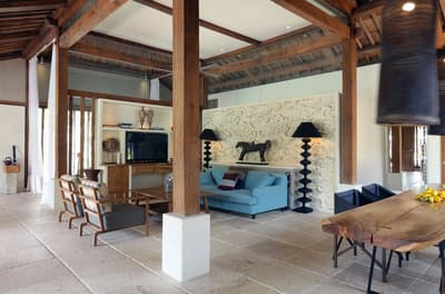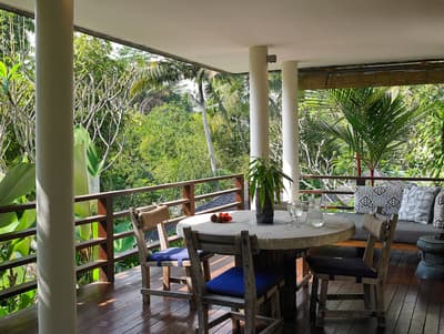 Le top ! Elle profite d’une piscine et d’une merveilleuse véranda aménagée de lits de séjour, de fauteuils, de longues chaises et d’une table à manger. C’est l’emplacement idéal pour apprécier le cadre reposant et la vue sur la jungle. Très spacieuse, son salon est confortable avec de beaux fauteuils. Salle de bain avec baignoire en pierre.