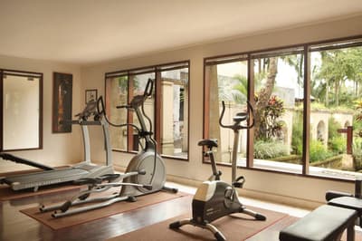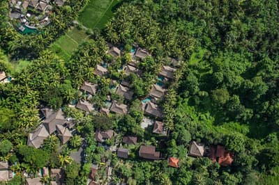 Comme un petit village… avec seulement des villas… Si ça c’est pas, le luxe complet, qu’est-ce que c’est ? Et puis ouais, chaque villa a sa propre piscine privée. Comme ça, pas de jaloux ! Mais ce n’est pas tout. Loin de là. Vous aurez une douche intérieure ET une douche extérieure. Et si tout ça ne vous suffit pas (ça serait bizarre et ça serait surtout une première, mais bon, on sait jamais !), vous pouvez aller vous détendre à la piscine commune. Arrondie face à la nature, elle est carrément spéciale, elle dégage une aura particulière difficile à décrire. Allongez-vous sur votre transat ou allez-vous accouder sur ses bords en regardant les immenses palmiers, vous verrez. C’est une sensation étrange à la croisée du dépaysement et de la détente la plus totale. Comme quand on expire après l’effort ultime ! Comme si vous souffliez enfin après des mois, ou des années, à attendre ce moment. Entre le spa, les dîners romantiques aux bougies et le jardin luxuriant d’un vert inoubliable, vous allez avoir le temps de profiter de cette vue magnifique. Et si vous aspirez à encore mieux, allez participer à un trekking dans les rizières au lever du soleil. Il y a moyen que vous découvriez des couleurs que vous n’aviez encore jamais vues…