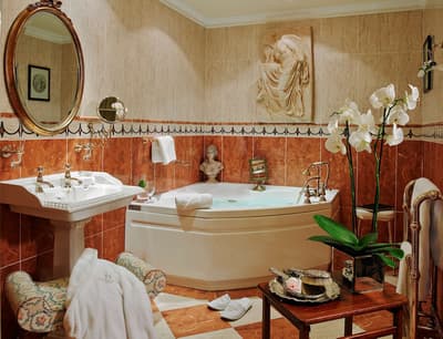Décorée individuellement, elle comporte des tissus d'ameublement, des meubles et des antiquités uniques. Après vos activités de la journée, vous pourrez vous détendre dans les fauteuils confortables. La chambre est dotée d’un lit douillet et la salle de bains de luxe spacieuse est équipée d’une douche et d’une baignoire séparées. Le tout dans une atmosphère royale !