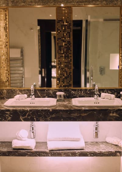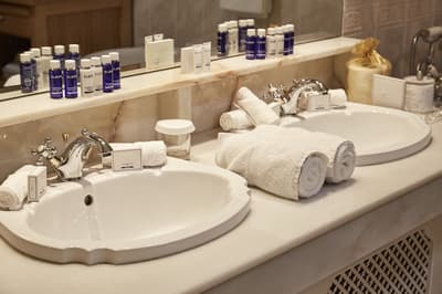 Dans un style classique et contemporain, il profite d’un mobilier unique, d’une moquette au sol et se complète par un beau papier peint et des accessoires raffinés. La chambre est dotée d’un lit king size et de lits jumeaux luxueux et la salle de bains spacieuse en marbre est équipée d’un double vasque et d’une douche uniquement. Le tout dans une atmosphère royale !
