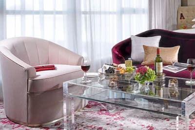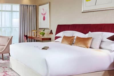 Avec son grand g sculpté au bord de l’eau, impossible de louper le G Hotel & spa. Même la nuit puisque sa façade ultra moderne s’illumine de toutes les couleurs ! Un vrai spectacle ! Et ça continue à l’intérieur avec le lobby entouré de parois de verres noirs et d’hippocampes élevés dans le Connemara. Et vous serez complètement subjugué par ce lustre monumental complètement dingue composé de boules argentées scintillantes qui flottent dans les airs comme des bulles. Hellooo le spot Instagram ! Un grand tapis rose bonbon vient contraster avec le mobilier taupe et beige de velours. Avec ses grandes baies vitrées partout, vous allez pouvoir profiter du panorama extraordinaire sur le magnifique lough Atalia. Evasion irlandaise assurée ! Modernité et touche baroque élégante dans les salons pensées par le célèbre modiste Philip Treacy. Cet Irlandais a habillé tout Hollywood, d’Oprah Winfrey à Sarah Jessica Parker ! A vous de jouer la star en vous asseyant dans un fauteuil douillet capitonné, encadré de miroirs et de matières chaleureuses, dans un univers très glamour. Et que dire du spa, tout simplement sublime avec son bassin dans les gris anthracite qui s’illumine de l’intérieur, auréolé d’un grand lustre poétique d’oiseaux de papier. Certainement l’un des plus beaux espaces de bien-être du pays avec son hammam en cristal et ses transats chauffés installés à côté de la terrasse zen peuplée de bambous. Canon !