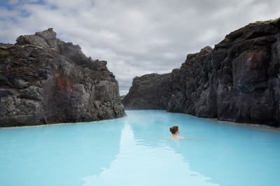 Non, le Blue Lagoon n'est pas le nom d'un cocktail mais celui d'une piscine géothermique de la pénisule de Reykjanes (au sud-ouest de l'Islande) que le National Geographic a classée parmi les 25 merveilles du monde ! Imaginez un lac d'un bleu laiteux, aux eaux fumantes, enchâssé dans des champs de lave. Et entouré de neige par-dessus le marché quand l'hiver s'en mêle. Modelé par la main de Dieu au début des temps ? Non, par celles du docteur Grímur Sæmundsen qui repéra dans les années 80 le potentiel curatif des eaux de la région. En bordure du lagon, le Retreat at the Blue Lagoon Iceland, premier 5 étoiles d'Islande, émerge à peine du paysage, comme pour éviter de chahuter cette harmonie suréelle. Sa sobriété toute de verre, de bois et de lave vaut élégance. Son architecture de classe internationale ne ferait pas tâche dans un film de James Bond. Si de fantômatiques silhouettes vêtues de blanc hantent les couloirs, c'est qu'ici le peignoir sert de dress code. On vient au Retreat pour son improbable spa souterrain, relié à une partie privatisée du Blue Lagoon. Vous verrez, c'est une expérience rare dans un lieu hors du temps : après les massages et les soins, on plonge dans les eaux du lagon à plus de 37°, entre deux grandes parois de lave pétrifiée. On en ressort exfolié, purifié, rarement pressé de quitter ce petit paradis nordique.